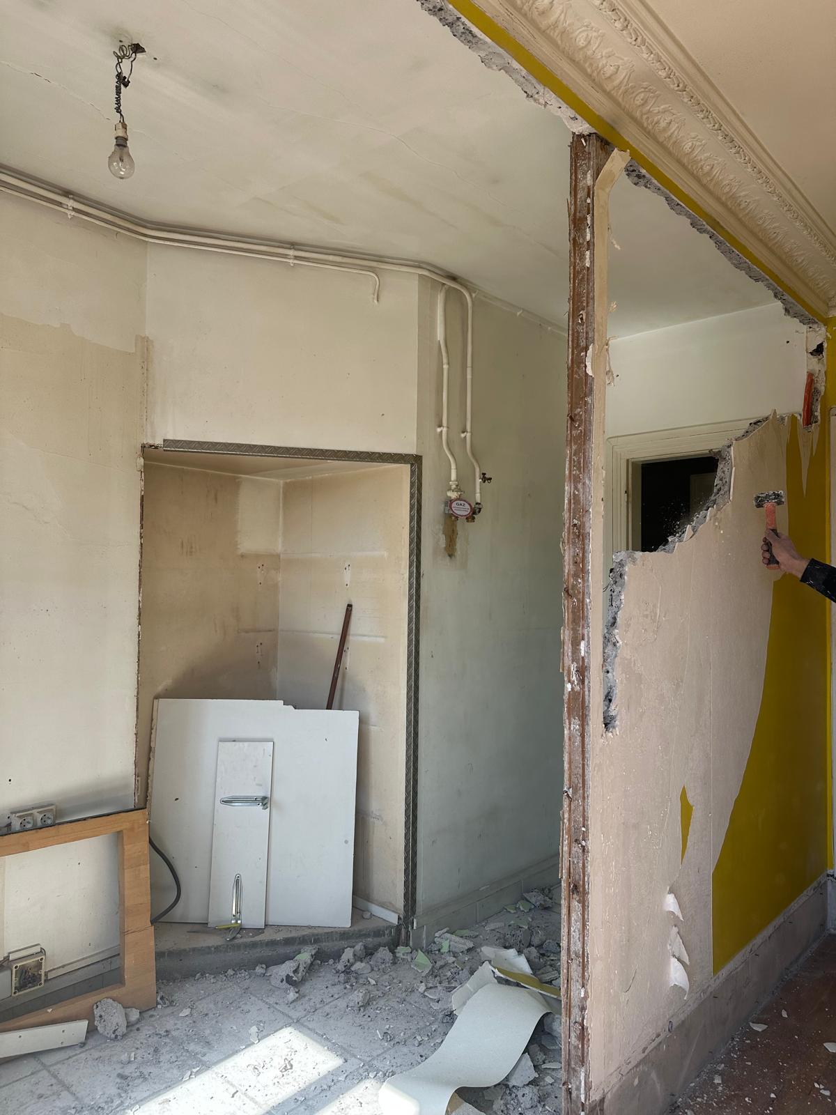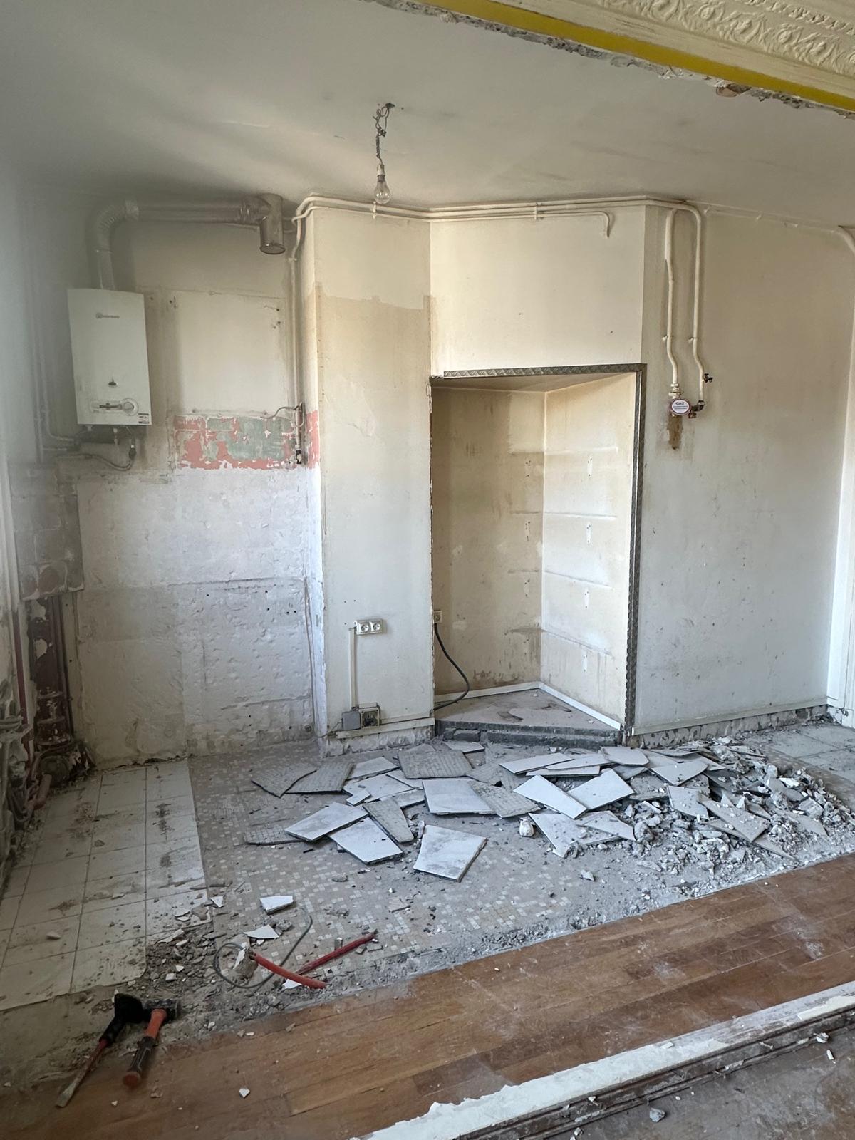 Nous avons récemment terminé un projet de rénovation complète d’un appartement situé à Vincennes. Ce chantier a été l’occasion de repenser totalement l’espace et d’apporter une vraie seconde vie à ce logement. Nous avons commencé par la démolition de la cuisine, en retirant les murs et la dalle béton, ainsi que l’ancienne cuisine elle-même. La salle de bain a également été entièrement démolie pour laisser place à une création neuve, moderne et fonctionnelle. Une nouvelle dalle béton et un carrelage ont été installés dans la cuisine, apportant un vrai cachet à la pièce. Nous avons aussi remplacé le WC, rénové l’ensemble des parquets, et repris toutes les peintures et les enduits pour une finition soignée et harmonieuse. Ce chantier à Vincennes illustre parfaitement notre savoir-faire en rénovation intérieure complète.